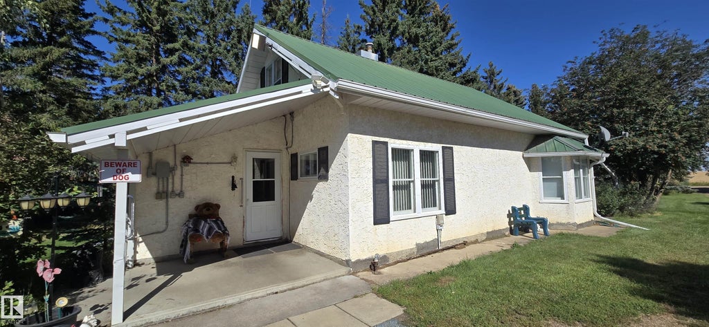 Check out this mature acreage 8.15 acre acreage located 10 minutes south of Vegreville. Comfortable 1 -1/2 story house with 3 bedrooms, large living room, main floor laundry, metal roof. Beautiful yard treed yard with many out buildings, garage shop, cold storage, and quonset.